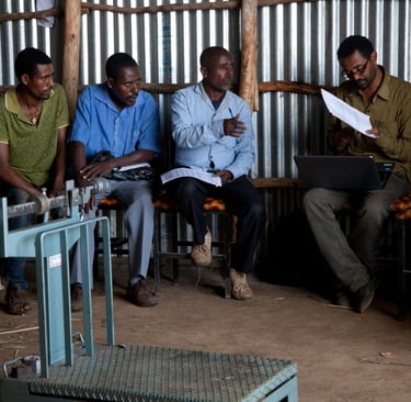 Members of the Kontir Berhan Forest Coffee Marketing Cooperative receiving their first dividend payment from profits from last year’s production – at the cooperatives forest coffee processing plant in Shimi Kebele, Sheko Woreda
