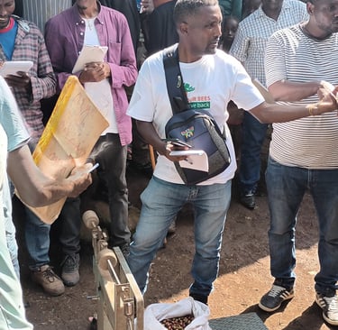 The incredible honey and coffee from these Afromontane forests needs to travel from the depths of the forest to the home of the collector or beekeeper, onwards to the cooperative and then to a buyer all while maintaining it’s quality and integrity. To achieve this the TRANSFORM project has introduced a traceability and quality assurance system that uses mobile phones to collect data at every step in the process. Using the free survey tool KoboToolbox, location and quality control data is collected and matched using unique ID codes to a register containing the information of the coffee collectors and beekeepers’ details. Using KoboToolbox allows for data to be collected at each point without the need of an internet connection and then the data can be uploaded and shared once a connection is established. This system allows information on quality, quantity, location and individuals to be tracked through their various processes. If an issue or inconsistencies should arise the system can be used to find the source of the problem and targeted interventions can be implemented. Thereby ensuring the quality of the products.