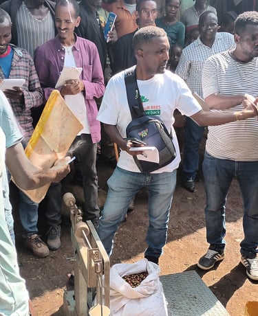 Comparing mobile data collection against the paper forms during a coffee harvest at one of the collection hubs in Giz Meret.